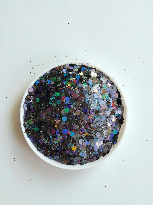HOLOGRAPHIC ULTRA FINE GLITTER DUST 1OZ: Obsidian
